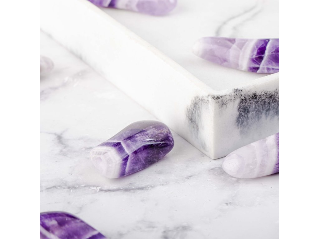 Ametyst chevron přísluší vzdušnému elementu, znamení Vodnáře a Uranu.