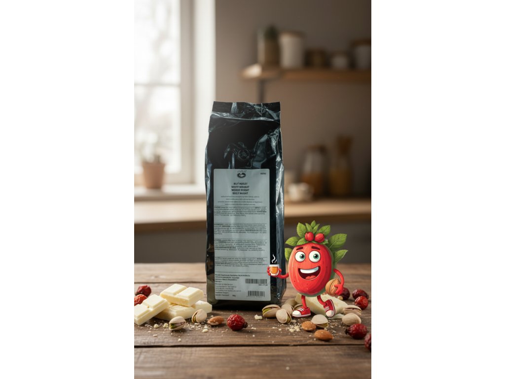 Pražená mletá káva aromatizovaná (100% arabika) s aroma krémové bílé čokolády a nugátu s tóny pistácií a vanilky.