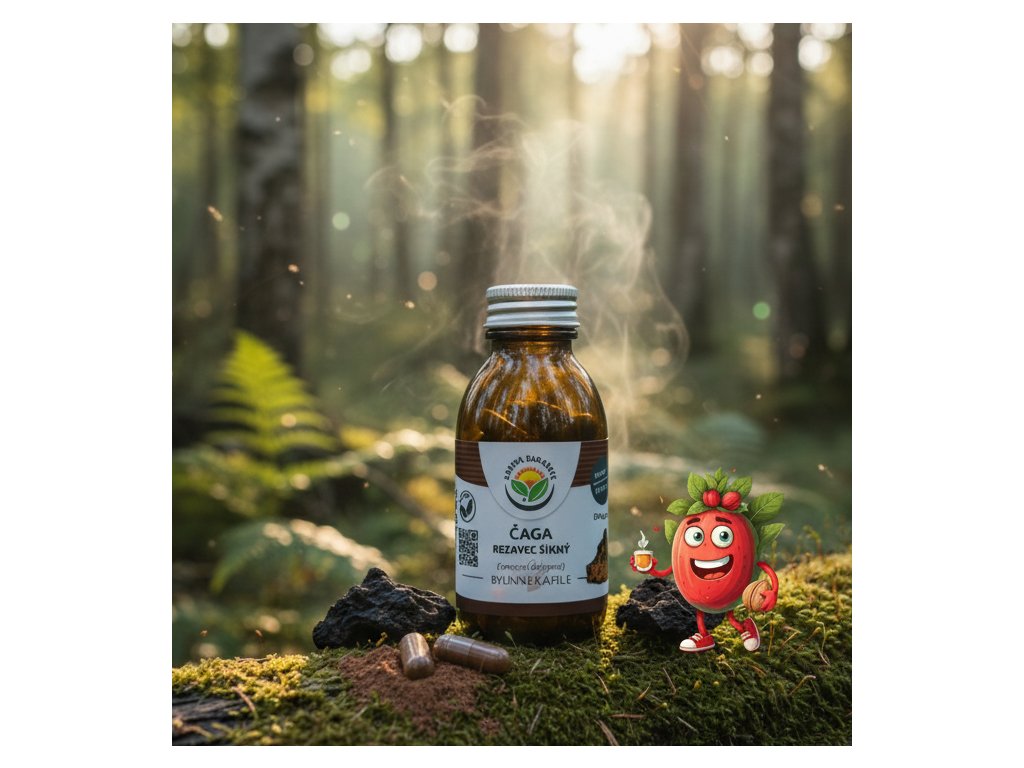 Chaga je jednou z nejléčivějších hub na planetě a jedním z nejsilnějších antioxidantů. Balení: 100 tobolek