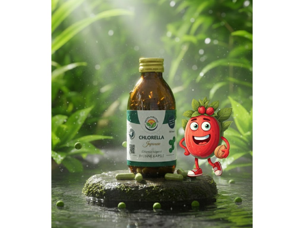 Složení: 100% Chlorella vulgaris dezintegrovaná, 360 mg/tobolka, obal tobolky – HPMC (hypromelosa). Tobolky jsou rostlinného původu, vhodné i pro vegetariány či vegany.