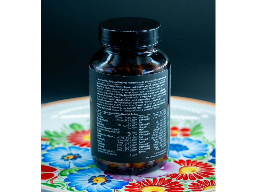 Perfektní kombinace 24 látek ve třech tobolkách vám zajistí denní dávku esenciálních vitamínů a minerálů, které dovolí tělu fungovat efektivně a na svém optimu.