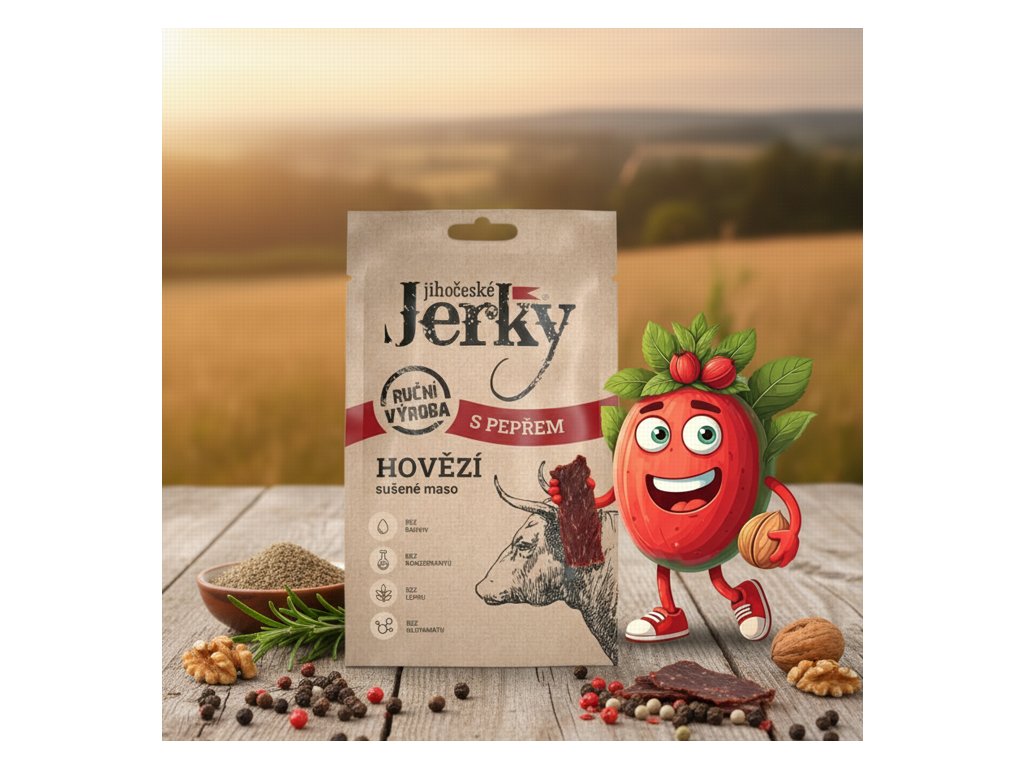Skvělá chuť sušeného, zauzeného hovězího masa z českých chovů. Vyrobeno ze 100% čisté hovězí svaloviny.