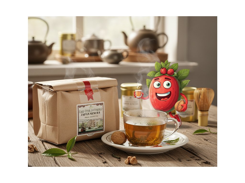Tradiční japonský zelený čaj lehce nasládlé, jemně svíravé, ale svěží chuti.