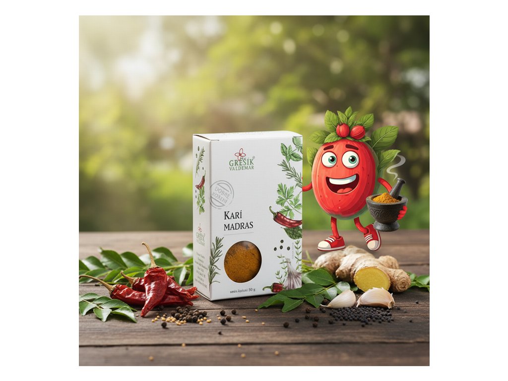 Ostřejší kari s paprikou, pro přípravu polévek, omáček, rýže, drůbeže, ryb.Balení: 50 g
