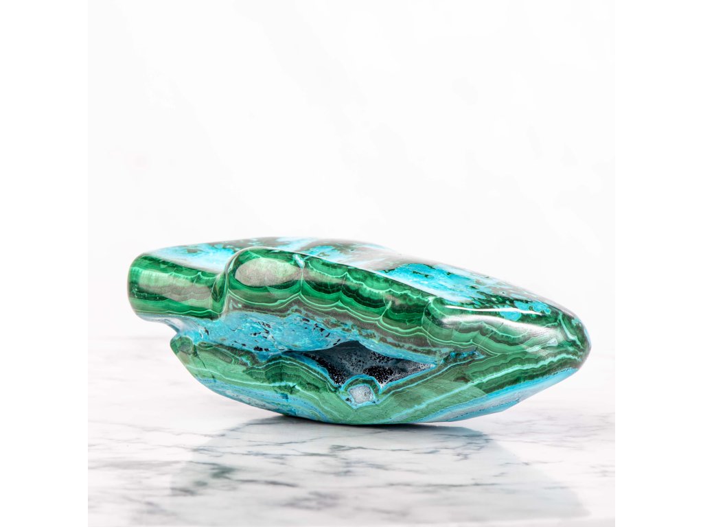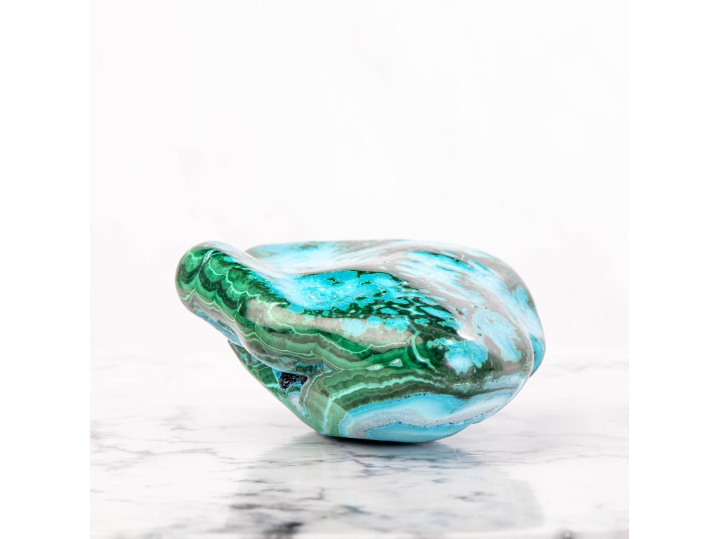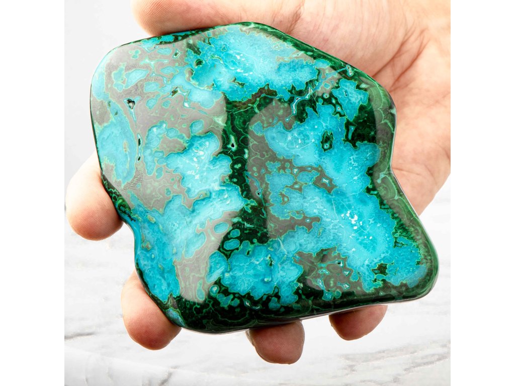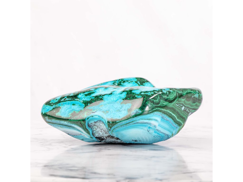 POZOR! Malachit je velmi křehký kámen a musí se pouze jemně otřít vodou. Nikdy nenamáčet do vody, mohl by popraskat. Po nějaké době se může rozdrobit, pak jej vraťte do země.