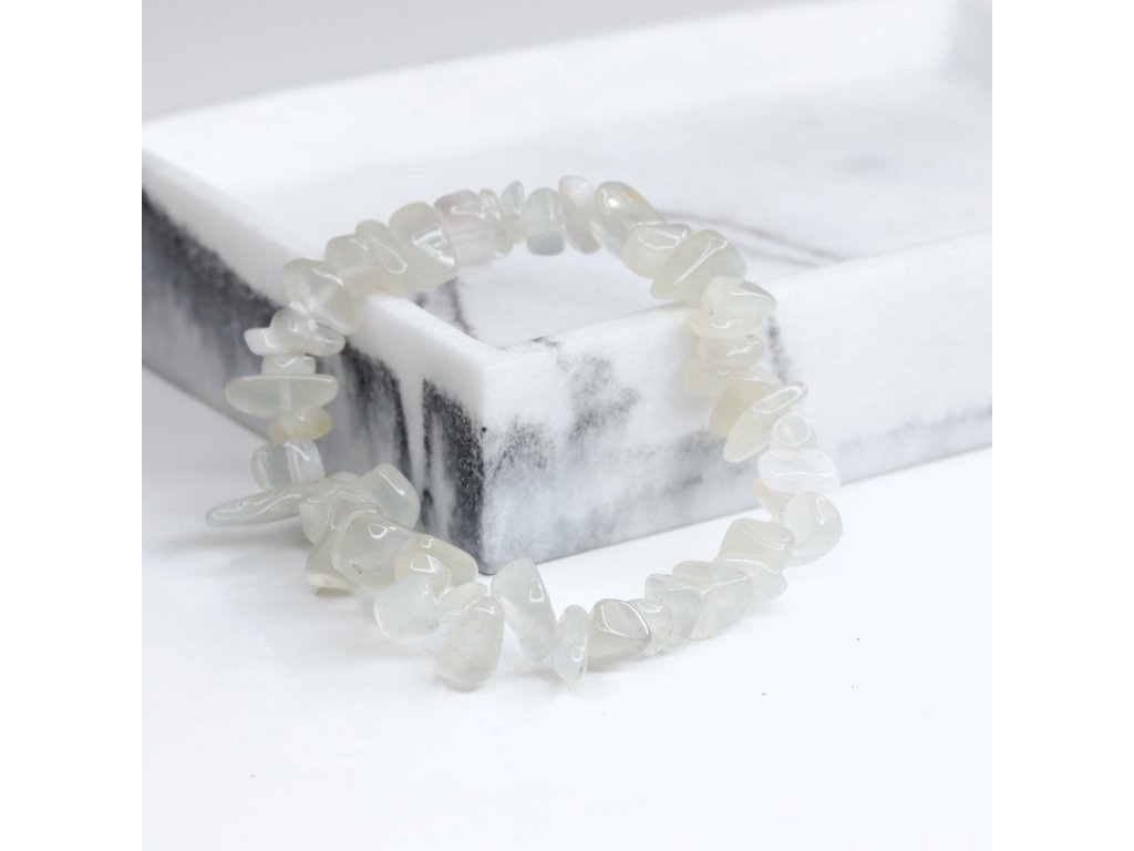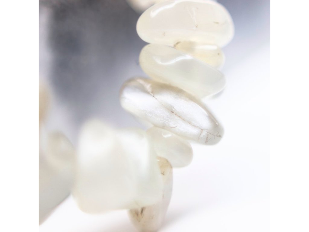 Vlastnosti: živec, průhledná a poloprůhledná bílá, krémová, růžová, broskvová, šedá, s odlesky a duhovými proužky. Magický krystal, který nabývá na síle a průsvitnosti tím, jak měsíc dorůstá.