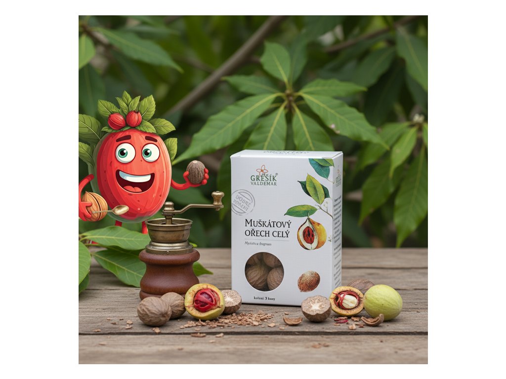 Do pečiva, bramborové kaše, bílé polévky, ragú. Má jemnější chuť než muškátový ořech. Balení: 30 g