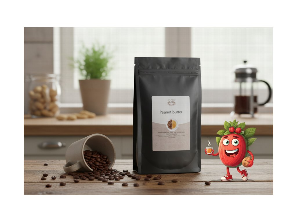Pražená zrnková káva aromatizovaná (100% arabika) s krémovou chutí pražených arašídů.