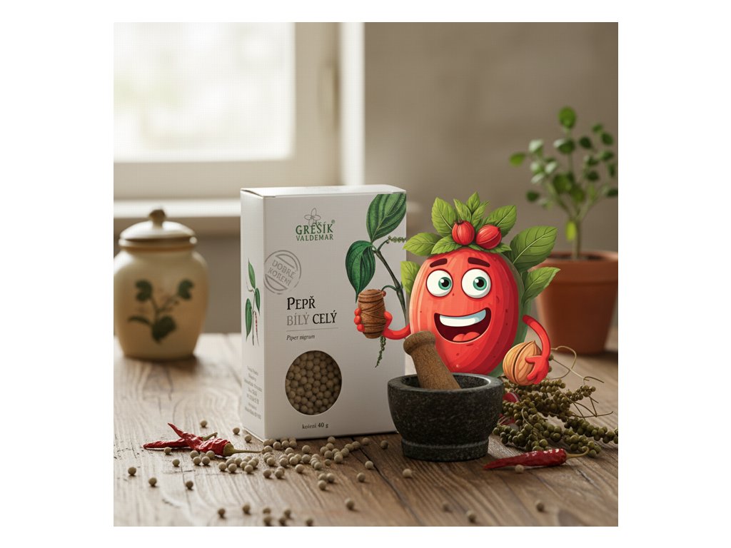 Pepř bílý celý 40 g GREŠÍK Dobré koření