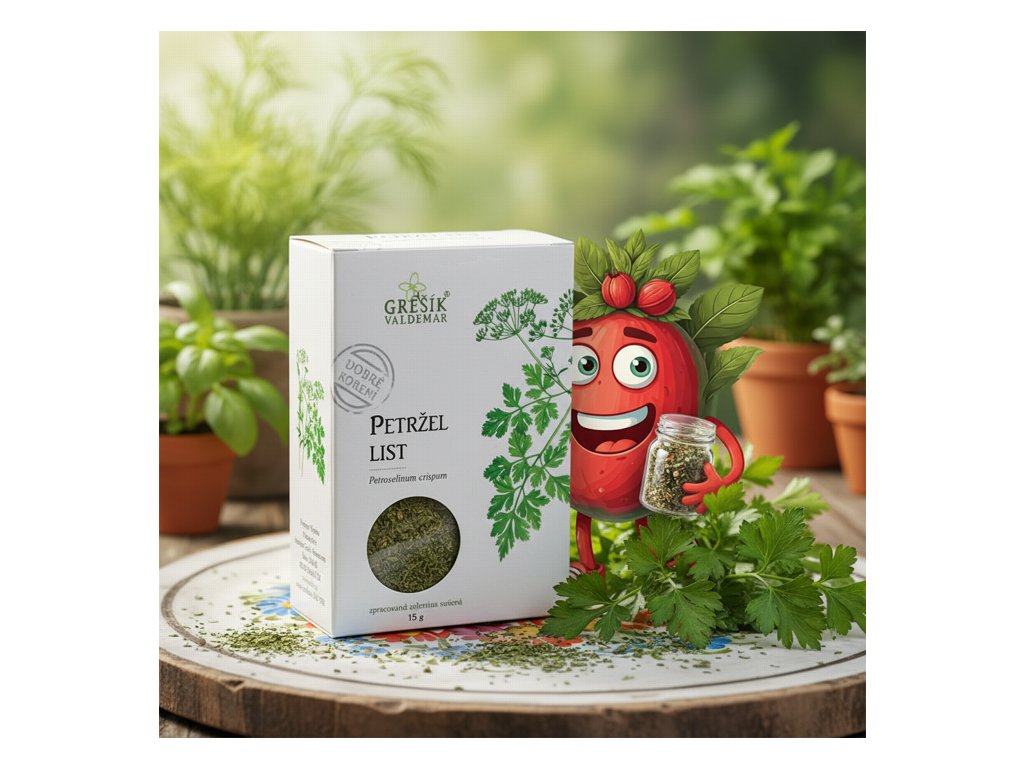 Petržel je bylinka, která se často používá jako koření v kuchyni. Má jemnou, osvěžující chuť a používá se k dochucení mnoha jídel, včetně polévek, omáček, salátů, masových a rybích pokrmů.