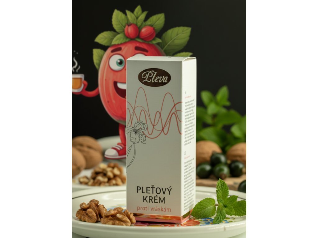 „Přejete si omezit tvorbu vrásek? Tak to jste našli to pravé – přírodní krém proti vráskám. Sametově hebký krém svým skvělým složením podporuje tvorbu kolagenu, regeneraci buněčného metabolismu a zlepšuje elasticitu pleti. Viditelně vyhlazuje pokožku a drobné vrásky. Obsahuje mořské řasy, kyselinu hyaluronovou a mateří kašičku. Krém je bohatý na bílkoviny, vitamíny, enzymy a další látky, které napomáhají výživě pleti. Příjemně výživný krém je vhodný pro zralou pleť. Po třicítce platí – čím dříve začnete krém proti vráskám používat, tím lépe.“ Hanka Plevová zakladatelka rodinné firmy Pleva