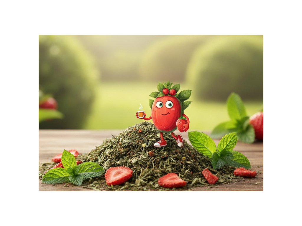 Zelený rooibos s vyjímečnou kombinací chladivé máty a sladkých jahod.