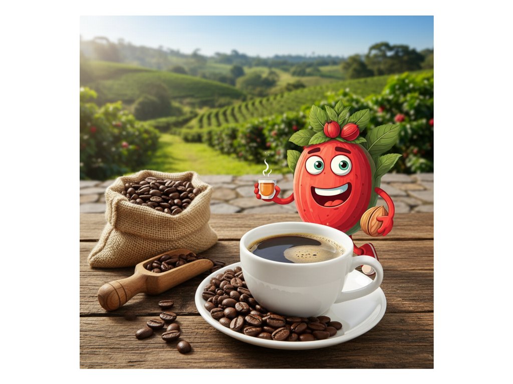 Pražená zrnková plantážní káva (100% arabika). Směs vybraných brazilských arabik.