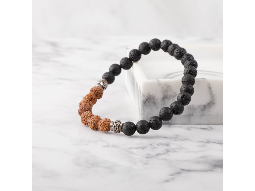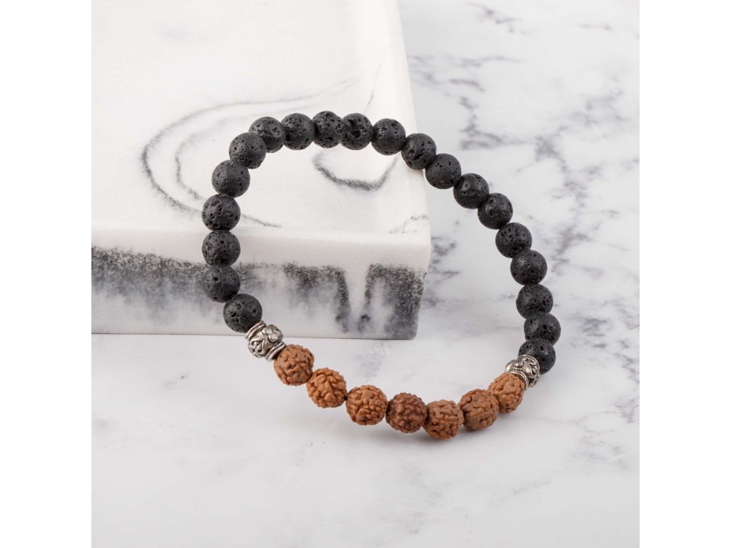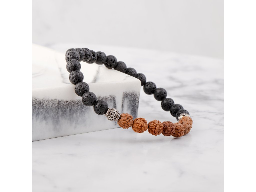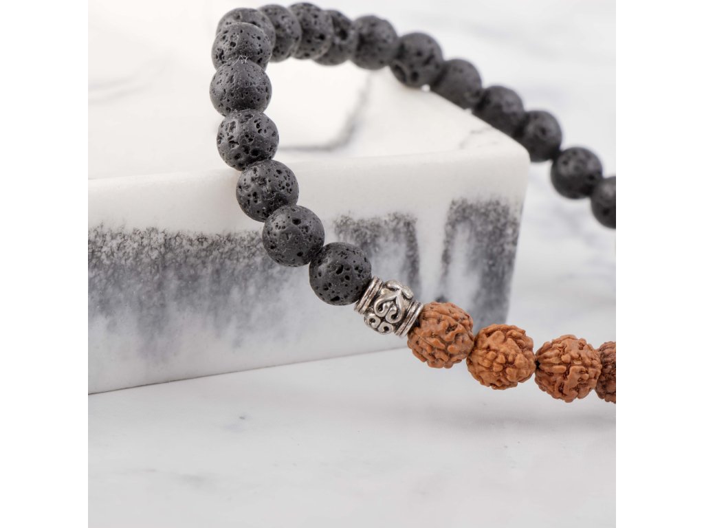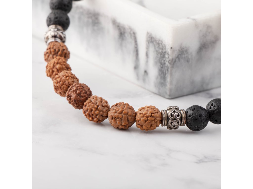 RUDRAKSHA X LÁVOVÝ KÁMEN NÁRAMEK KORÁLKOVÝ S DEKORACÍ (UNISEX) 6