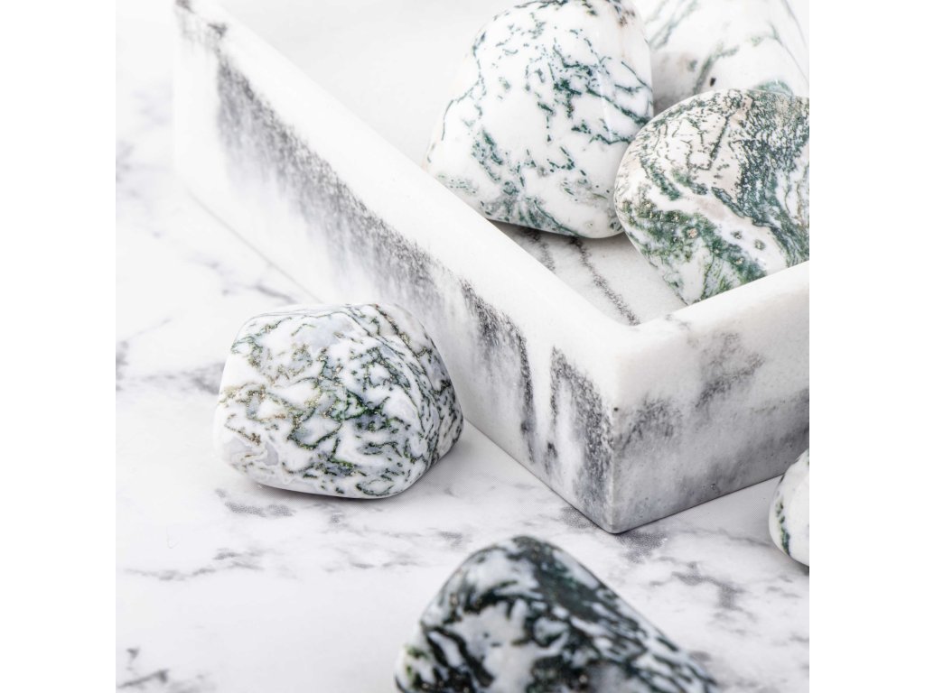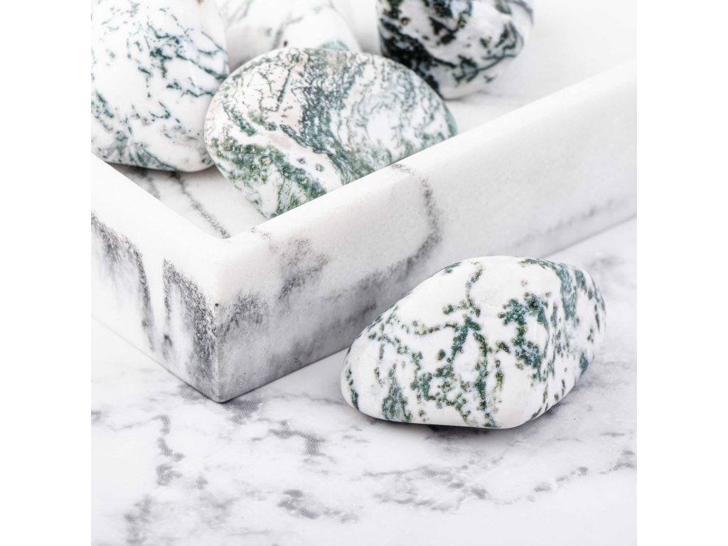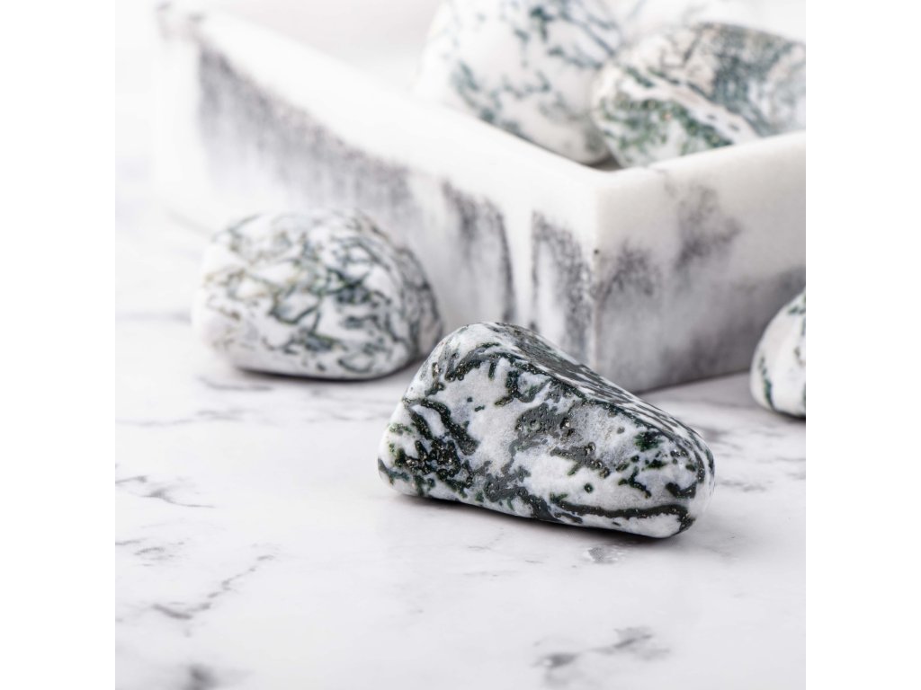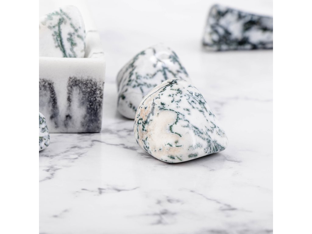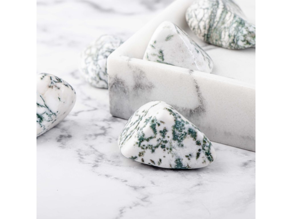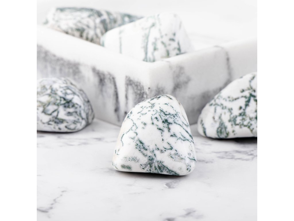 Stromečkový achát léčí smutek po rozvodu nebo trauma z dětství. Pokud položíte oblázek k malému stromku nebo pokojové rostlině, stromečkový achát funguje jako mocný talisman hojnosti a prosperity.