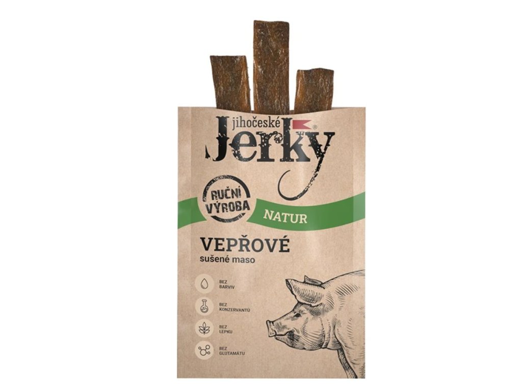 Skvělá chuť sušeného, zauzeného vepřového masa z českých chovů. Vyrobeno ze 100% čisté vepřové svaloviny.