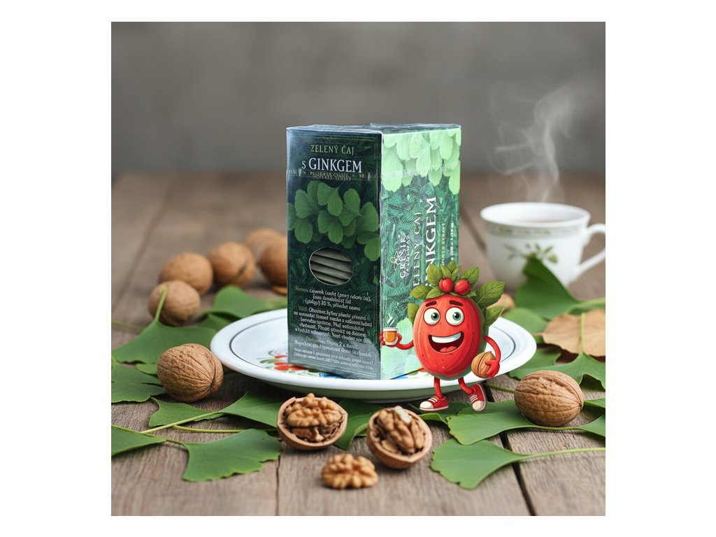 Složení: čajovník čínský (pravý zelený čaj), jinan dvoulaločný list (ginkgo) 20 %, přírodní aroma