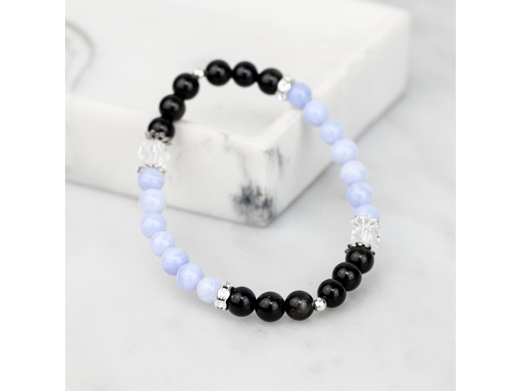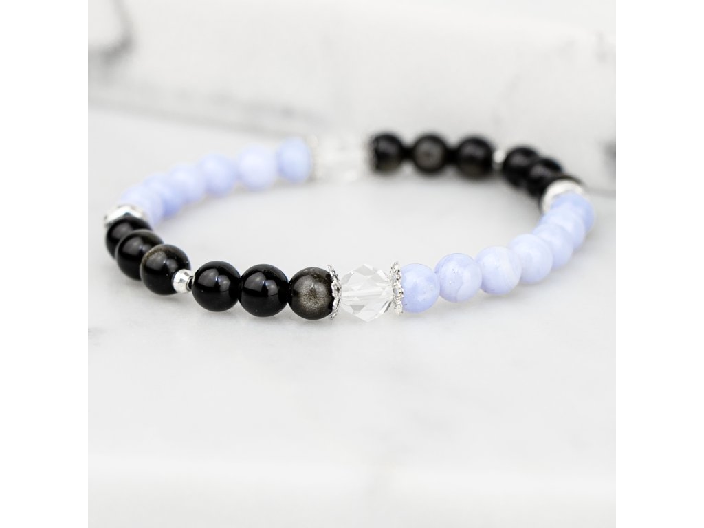 ZLATÝ OBSIDIÁN X KŘIŠŤÁL X MODRÝ CHALCEDON NÁRAMEK S DEKORACÍ (UNISEX)6