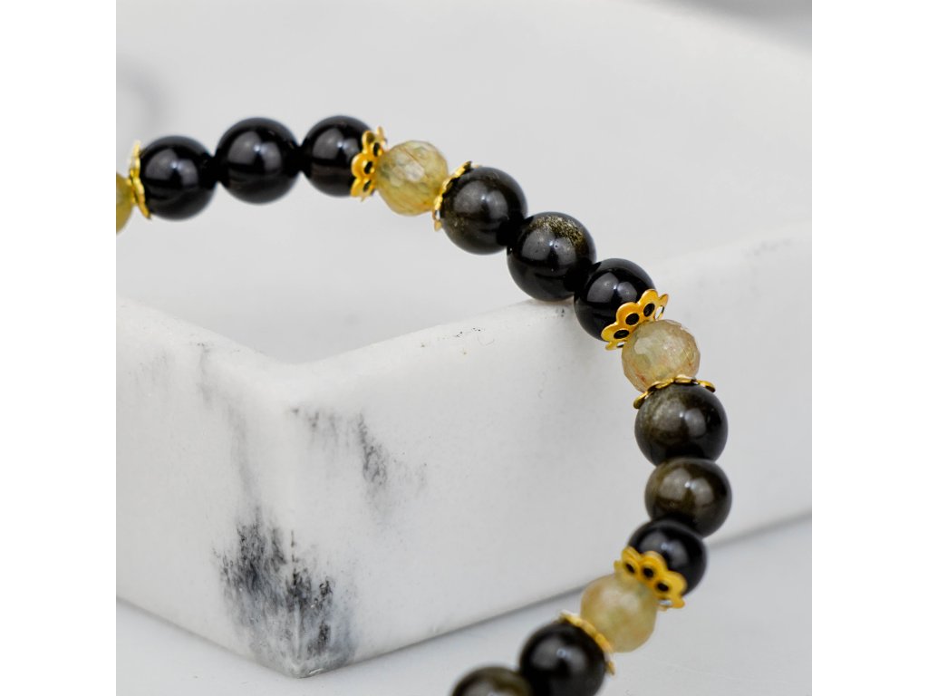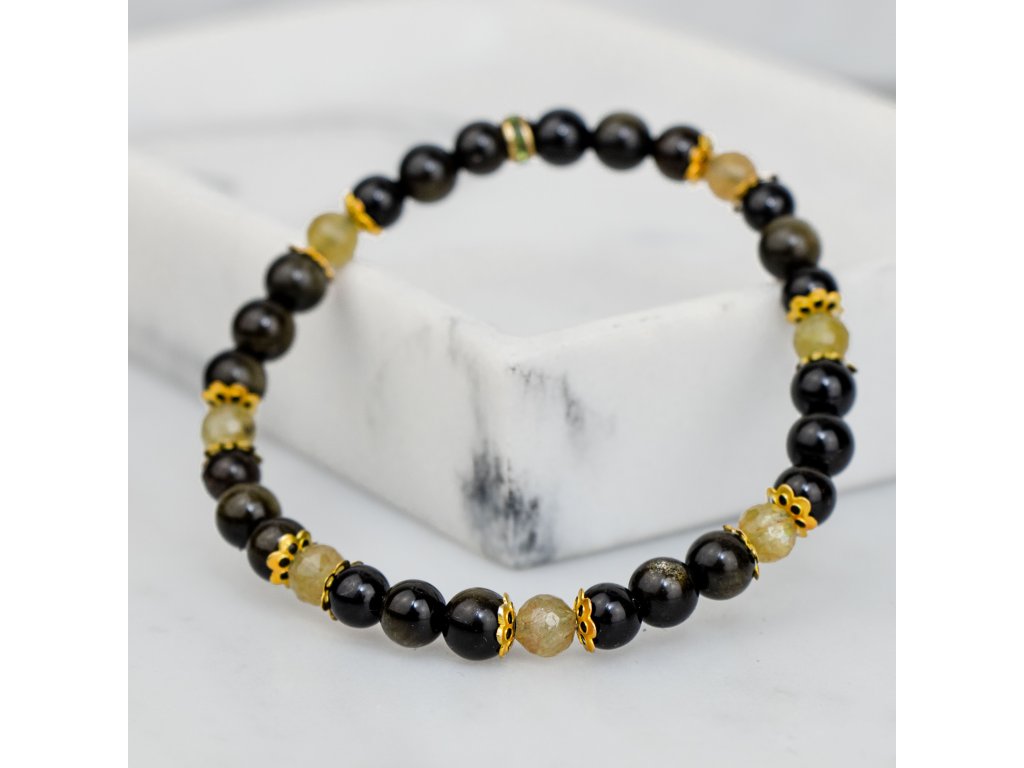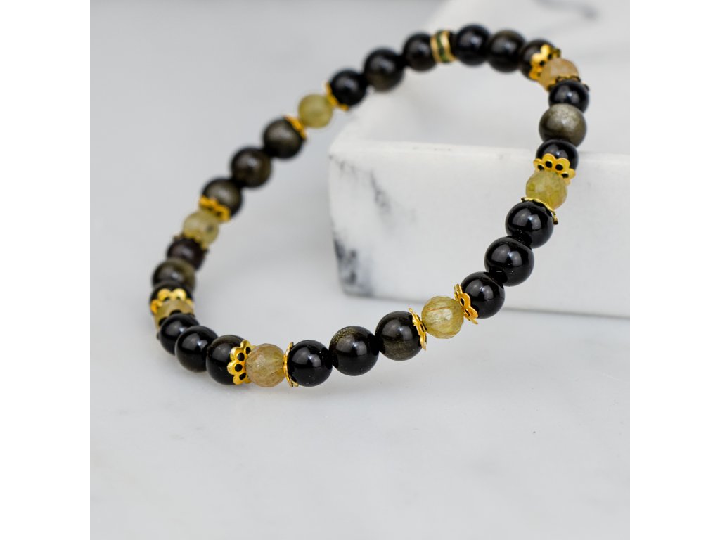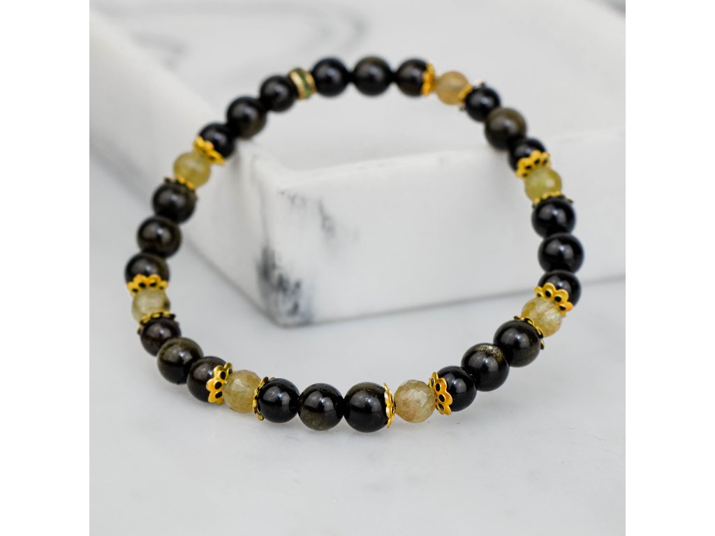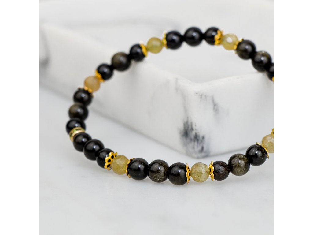 ZLATÝ OBSIDIÁN X ŽLUTÝ APATIT NÁRAMEK S DEKORACÍ (UNISEX) 6